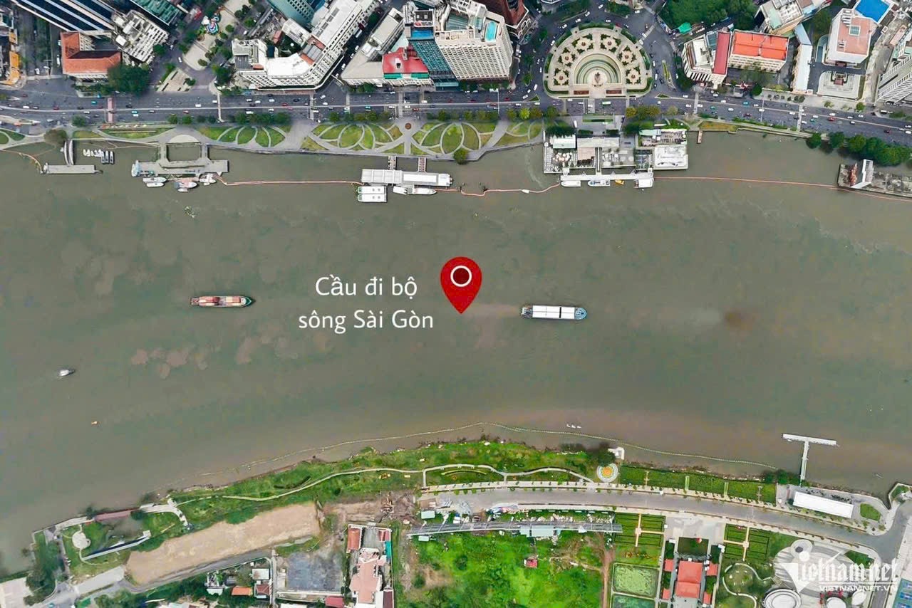 Vị trí xây dựng của cầu đi bộ kết nối giữa quận 1 và KĐT mới Thủ Thiêm